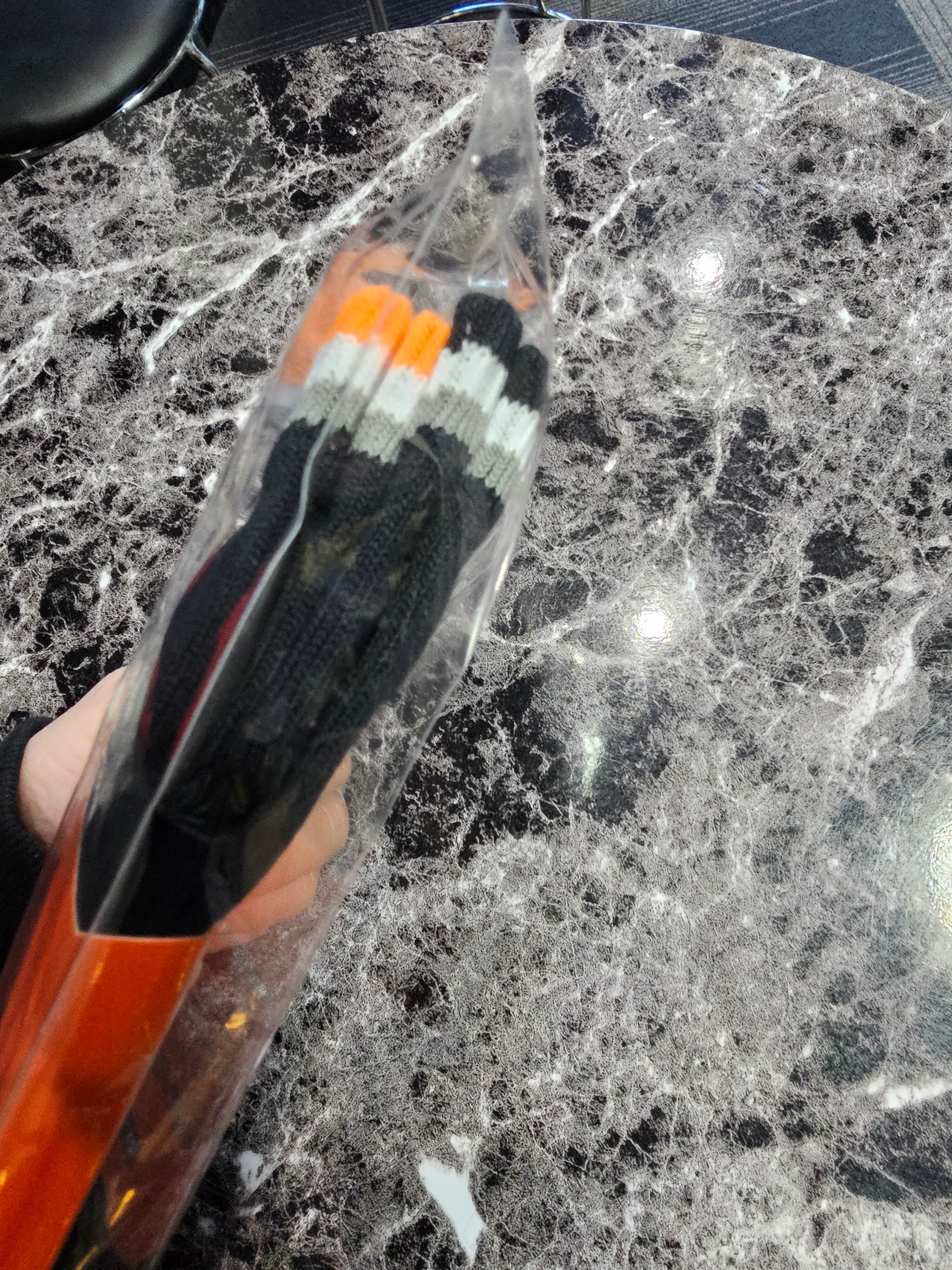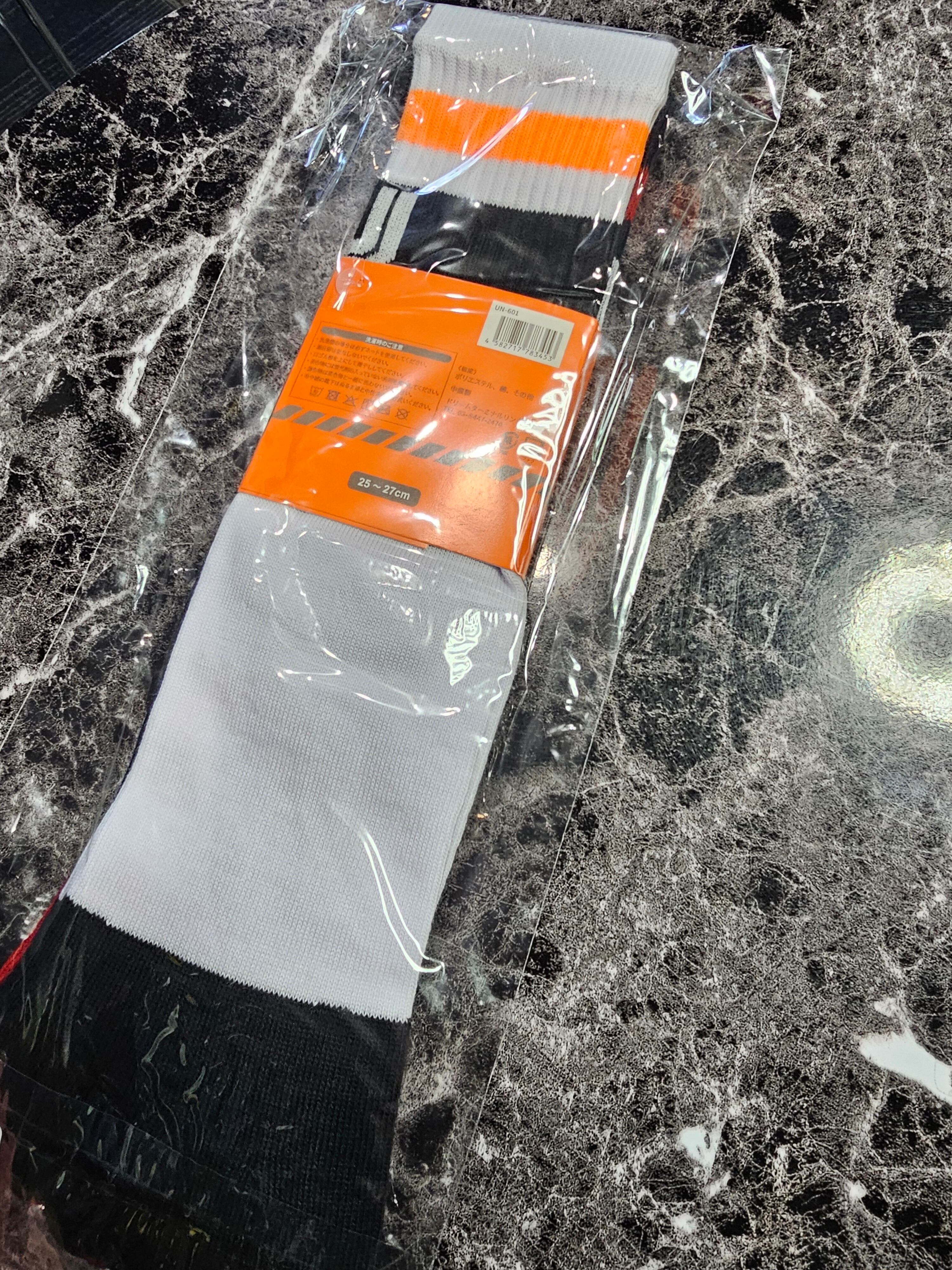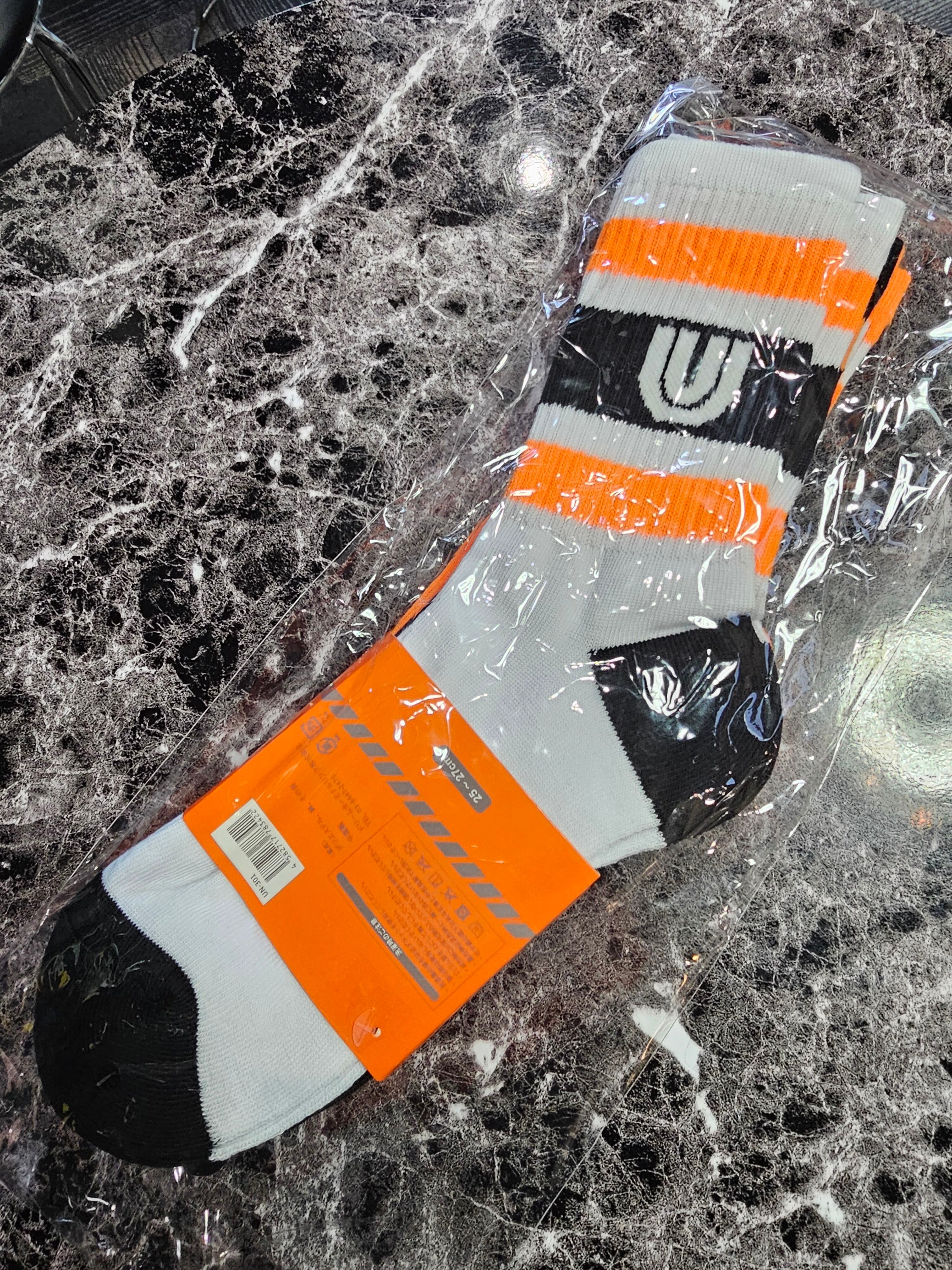 ・白×黒×オレンジのボーダー柄ソックス(UN-301)