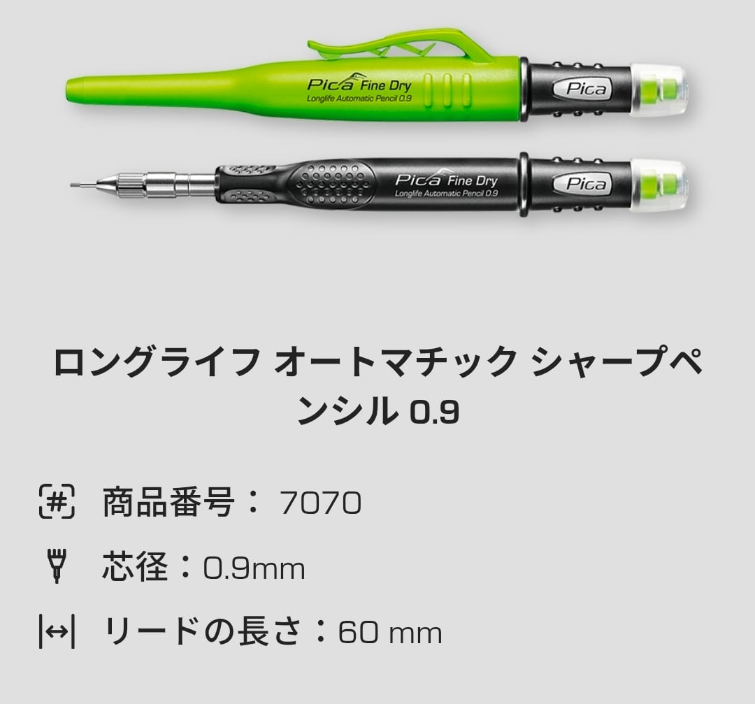芯径わずか0.9mmのシャープペンシルは、繊細で精密なマーキングに最適です。寸法安定性に優れたプラスチック製の実用的な鉛筆キャップは、片手で素早く操作できます。