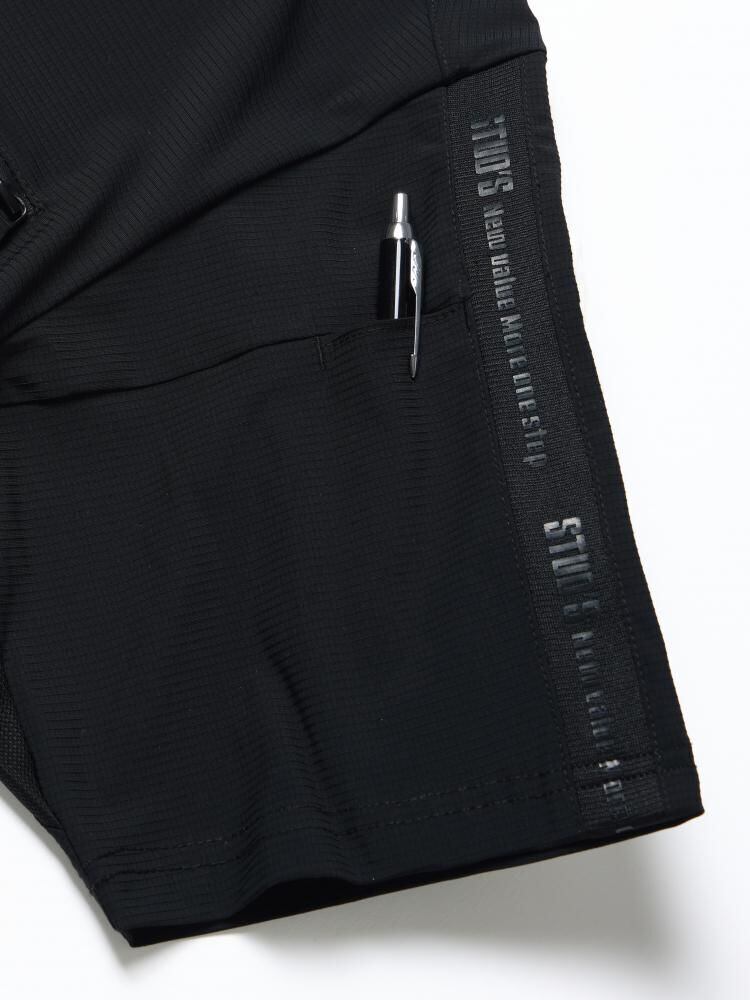 布帛やコンプレッションシャツに近いしっかりとしたハリとコシのある生地で手持ち感が抜群です。またニット生地にポリウレタンを混紡しているので縦横斜め全方向に対して高いストレッチ性も併せ持っています。